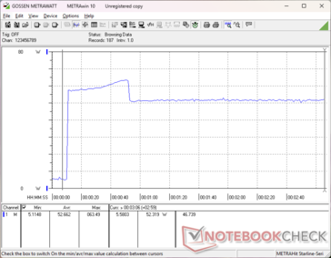 Genel tüketim düşüktür ve Core U serisi dizüstü bilgisayarlarla karşılaştırılabilir IdeaPad Slim 5 16 core Ultra 7 256V, ham kıyaslamalarda çoğu Core-U seçeneğini geride bıraksa da. Bu nedenle watt başına performans, gelecek vaat eden Snapdragon X Plus'a karşı daha rekabetçi olmak için Meteor Lake-U'dan makul ölçüde daha yüksektir. Örneğin Prime95'i çalıştırmak, Snapdragon destekli Prime95'e göre yaklaşık yüzde 50 daha fazla güç tüketiyor VivoBook S 15 (52 W vs. 35 W) ve bu süreçte yaklaşık yüzde 50 daha hızlı çoklu iş parçacığı performansı sunuyor.