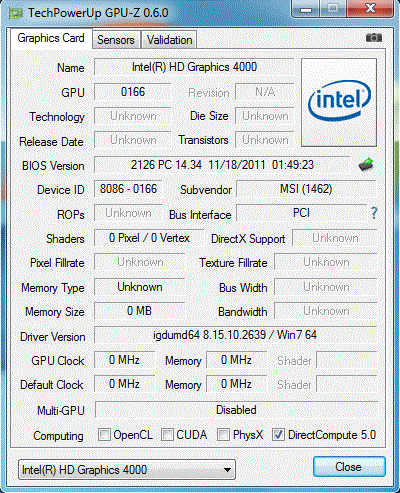 - Intel HD Graphics 4000 (GPU-Treiber: 8.15.10.2639)