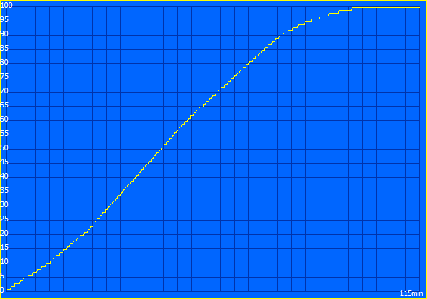 Güç tüketimi maksimum 65,2 W'a ulaşarak 65 W'lık şarj cihazının sağlayabileceğinden biraz daha fazla. Güç tüketimi hızla düştüğü için, cihaz kullanım sırasında şarj kaybetme riski taşımıyor.