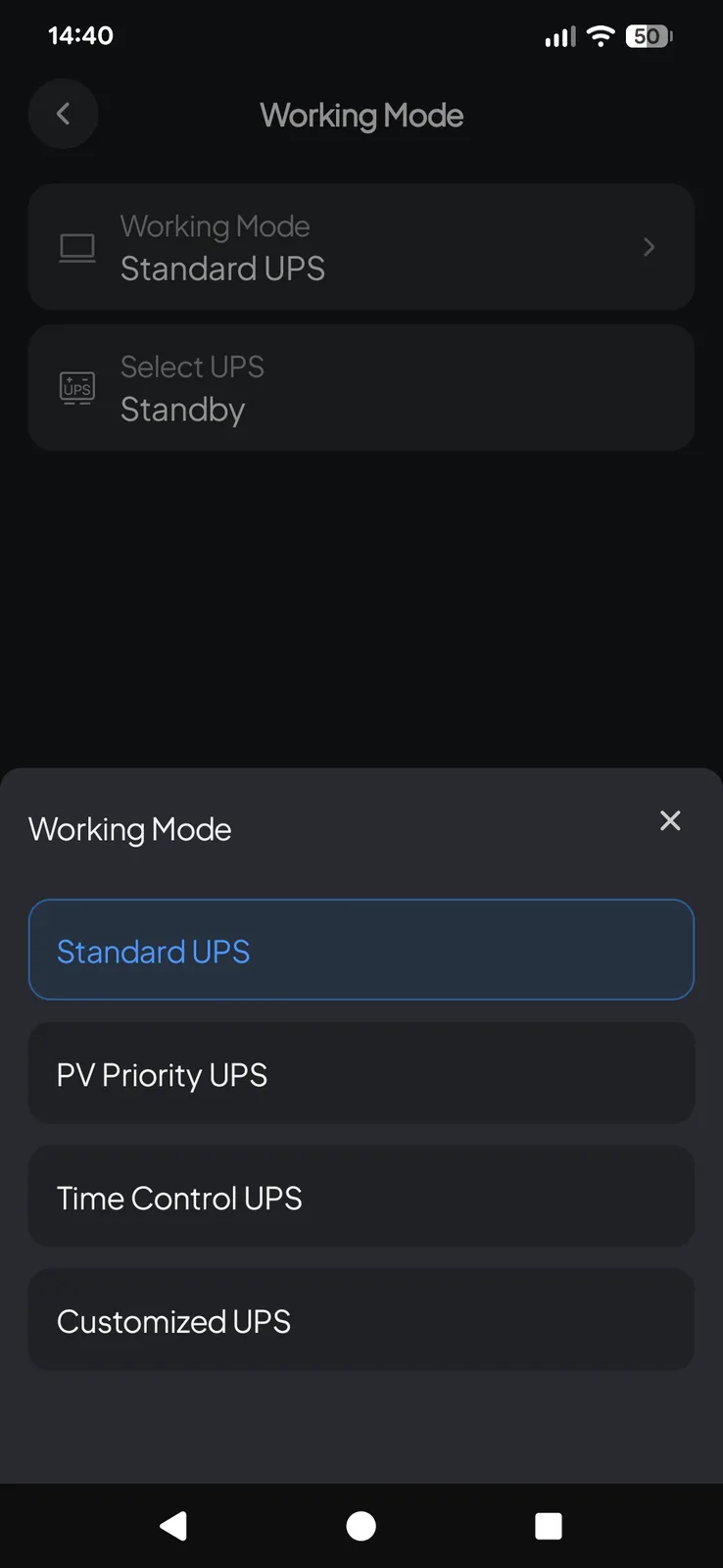 Şebekeye bağlandığında, V2 dahili bataryasını şarj ederken aynı zamanda geçişli şarj yoluyla bağlı cihazlara güç sağlar. UPS davranışı uygulamadan ayarlanabilir ve hatta zamana göre programlanabilir.