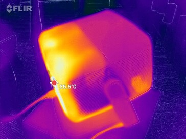 Beamer en çok, sıcak havanın iç mekandan dışarı üflendiği arka kısımda ısınır. Yaklaşık 40 °C'lik sıcak noktalar ölçtük. Ön taraftaki maksimum sıcaklık 30 °C'nin biraz üzerindeyken, kasanın yan taraflarında yalnızca 25 °C ölçtük.