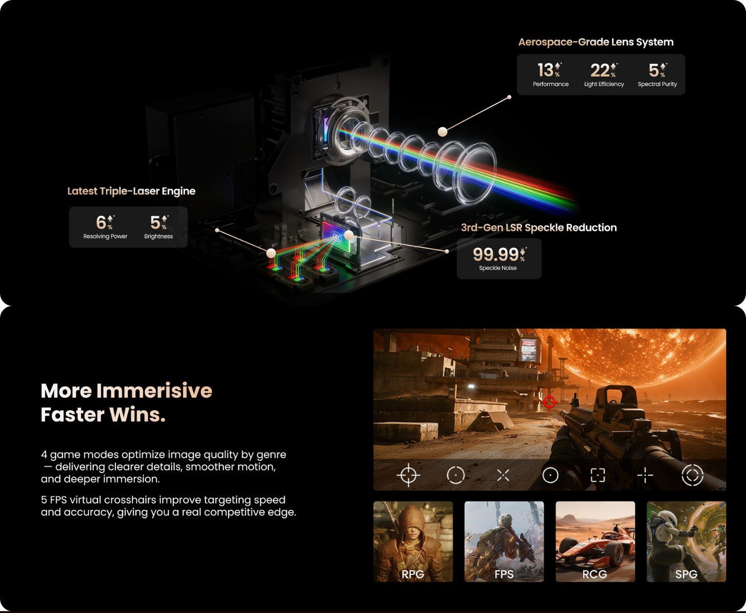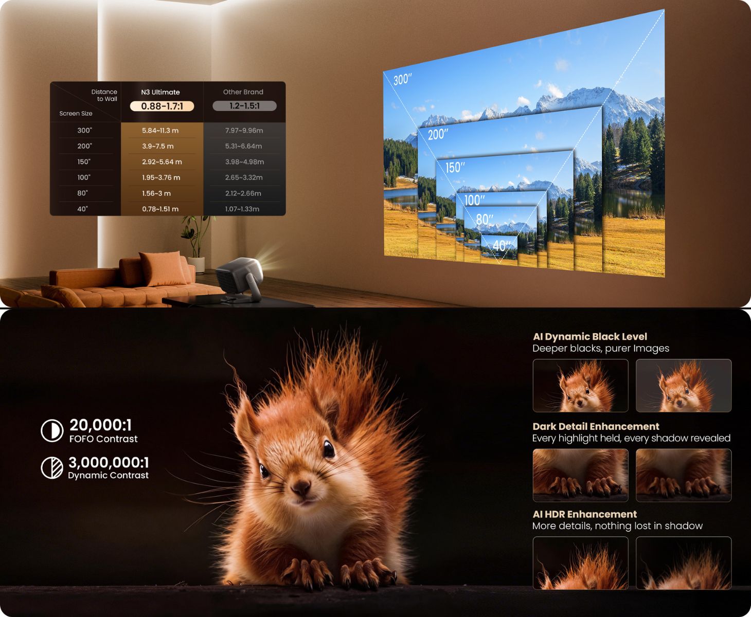 Görüntü kalitesi açısından N3 Ultimate, üç lazerli bir ışık kaynağı kullanıyor ve iddia edilen %110 BT.2020 renk gamı ve yaklaşık 0,7 Delta E ile 4K çözünürlük sunuyor. Projektör ayrıca 20.000:1 kontrast oranına sahip ve ses çıkışı için Dolby Audio ve DTS-X ile birlikte Dolby Vision ve HDR10'u destekliyor.