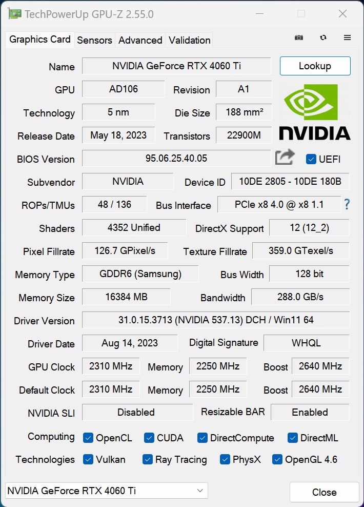 | NVIDIA GeForce RTX 4060 Ti 8G | |