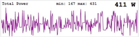 Sırada, dikkatimizi test sisteminin güç tüketimine çevireceğiz: şebeke soketinde, stres testi ve oyun testi sırasında sırasıyla 441 watt ve 489 watt'lık ortalama güç çekişi ölçtük. Ayrıca ElmorLabs PMD (güç ölçüm cihazı) kullanarak GPU'nun güç tüketimini ayrı ayrı değerlendirdik: KFA2 GeForce RTX 4080 Super SG 431 watt'a kadar kısa süreli güç artışları sergiledi. Bunun ışığında, üreticinin neden en son ATX 3.0 özelliklerine göre üretilmiş en az 750 watt'lık bir güç kaynağı kullanılmasını önerdiği anlaşılabilir.