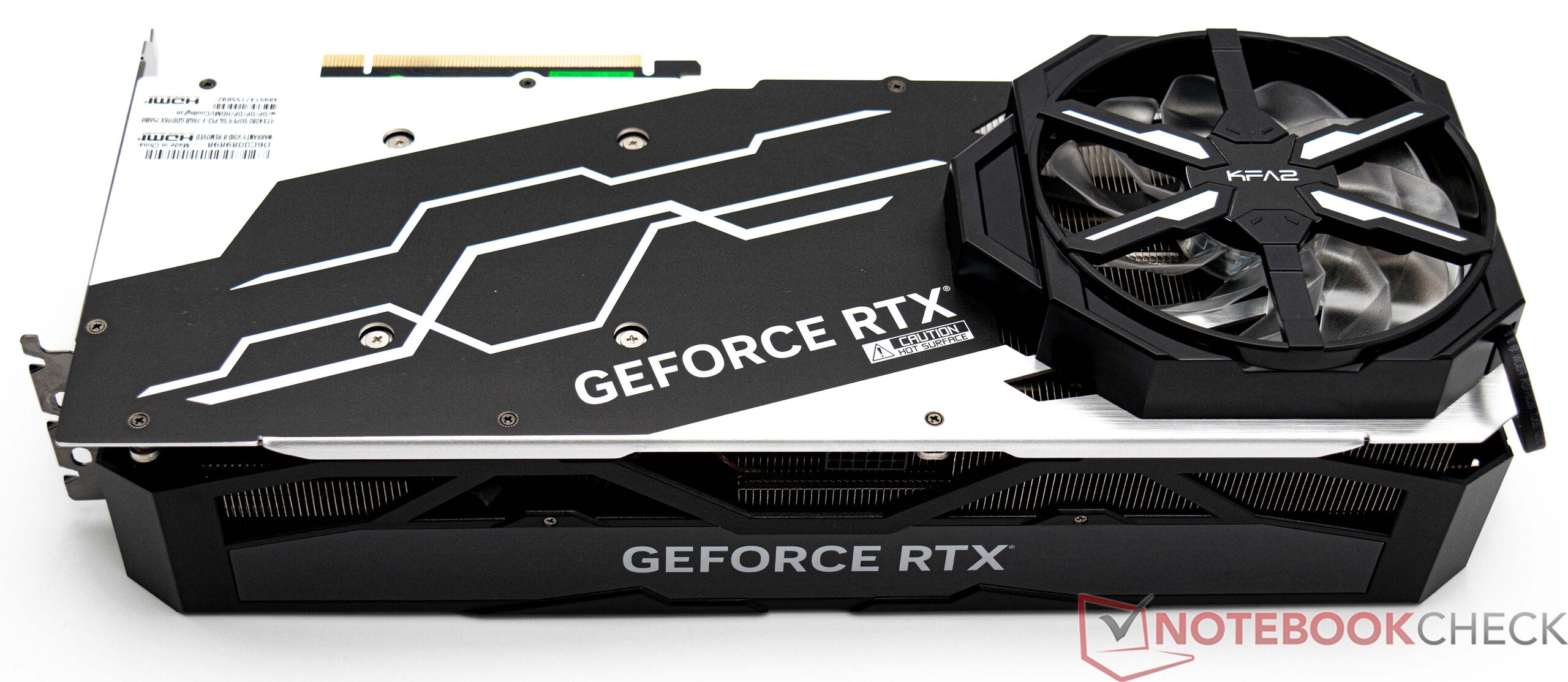Yeni kart görsel olarak KFA2 GeForce RTX 4080 SG ile aynı. Şirket ayrıca KFA2 GeForce RTX 4080 Super SG'ye bir bilgisayar kasasında üç yuvadan biraz daha fazla yer kaplayan devasa bir soğutucu vermiş. Üç adet 102 mm eksenel fan kalıcı olarak takılıdır; isteğe bağlı olarak dördüncü bir fan da grafik kartının arkasına takılabilir. Yatay olarak monte edildiğinde, GPU her anakartla her zaman uyumlu değildir. Test donanımımızda kartı dikey olarak monte ettik ve herhangi bir sorunla karşılaşmadık. Aşağıdaki tüm testler GPU'nun arkasına monte edilen ekstra fan ile gerçekleştirilmiştir. Kart 325 mm (12,8 inç) ile çok uzun. Ürünü satın almadan önce bunu kesinlikle göz önünde bulundurmalısınız çünkü her PC kasası bu kadar fazla alan sunmaz.