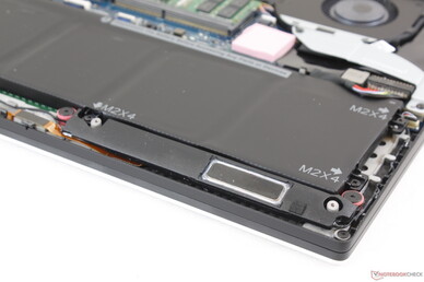 Not much has changed internally over the XPS 15 9570 as expected from a visual standpoint. RAM, WLAN, and M.2 storage are all still upgradeable and a lower battery capacity option (56 Wh) is still available on lesser SKUs for users who want secondary 2.5-inch SATA III storage.