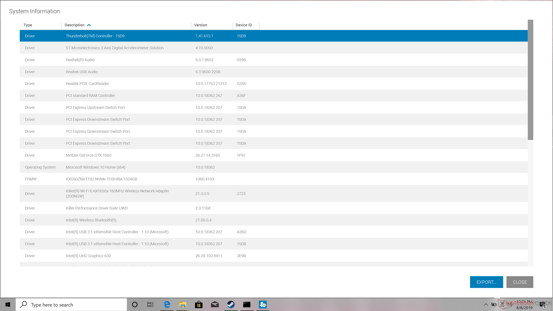 We recommend checking out our existing reviews on the XPS 15 9550, 9560, and 9570 for more information on the chassis, ports, keyboard, speakers, and other physical features since the 7590 is essentially the same design all over again. Our findings and experience with this particular 7590 review unit reflect the following driver versions as noted by the screenshots below.