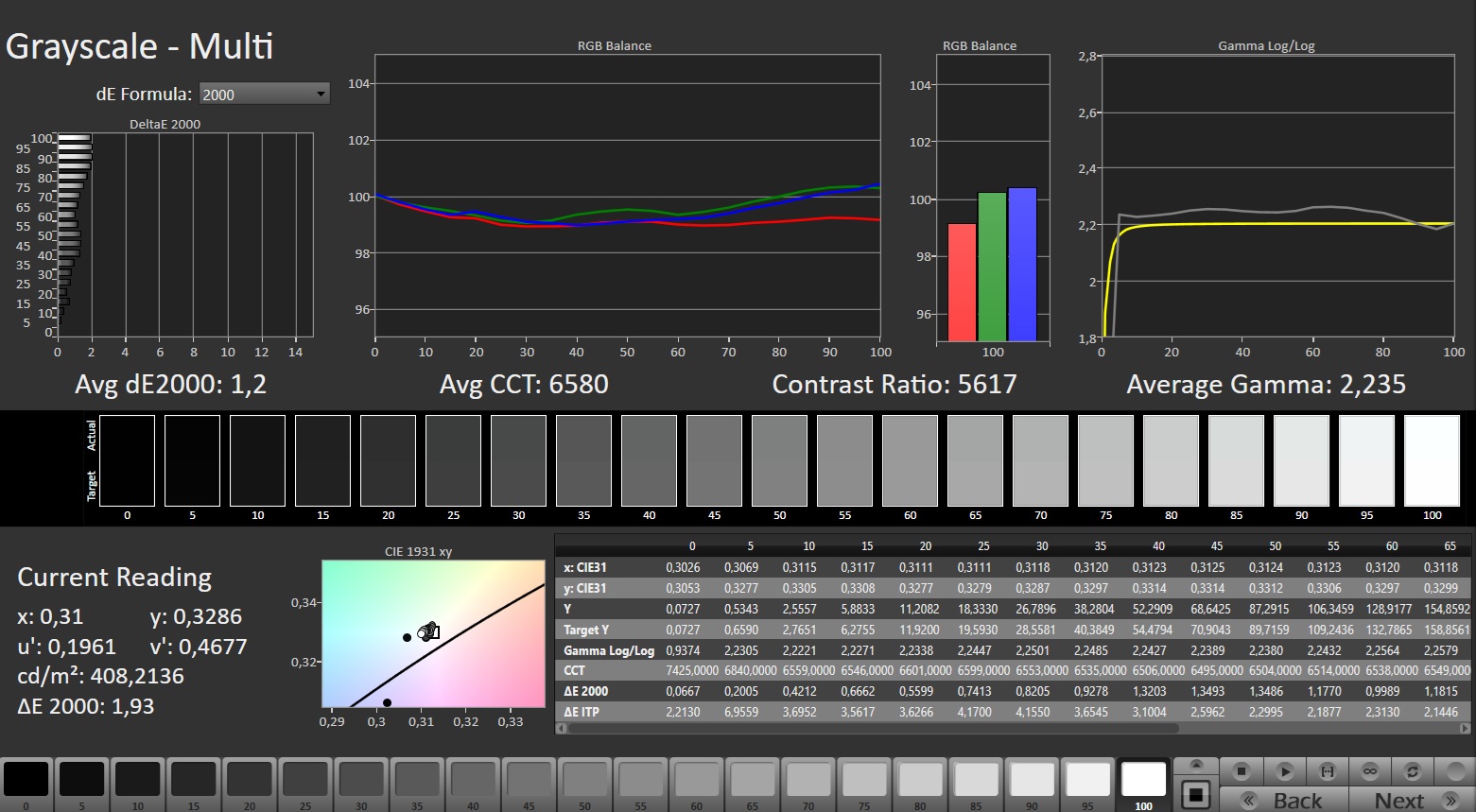 ΔE Greyscale Calman: 1.2 | ∀{0.09-98 Ø5}