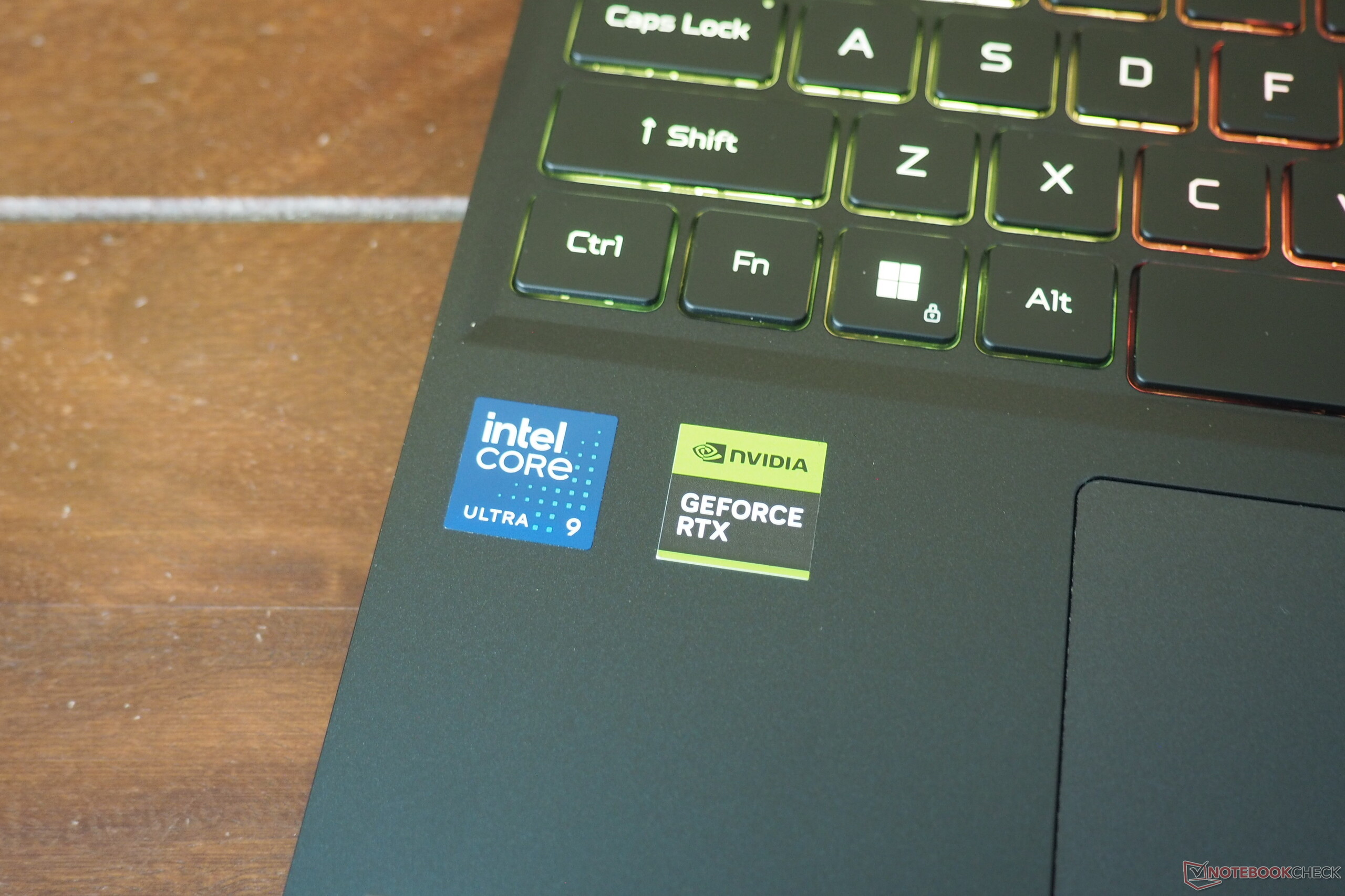 Giriş aygıtları üst düzey olmasa da oldukça iyi. Klavye, şık RGB aydınlatması ve sağlam tuş geri bildirimi ile etkileyicidir. Düzenini çoğunlukla beğendik (örneğin normal boyutta yön okları var), ancak ayrı bir güç düğmesi isterdik. Dokunmatik yüzey 12,6 x 8,3 cm'lik bir yüzey alanına sahip ve iyi hassasiyet ve kabul edilebilir kayma özellikleri ile memnun ediyor. Birçok dizüstü bilgisayarda olduğu gibi, tıklama alanları biraz takırdıyor, ancak bunun dışında kullanılabilir hissediliyor.