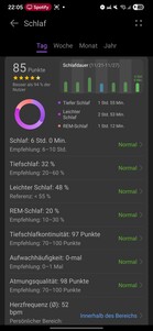 Huawei Watch Ultimate 2 kapsamlı uyku takibi sunar. Farklı uyku aşamalarını kaydediyor ve hem zamanlamalarını hem de toplam uykuya oranlarını gösteriyor. Bu aşamalar bir zaman çizelgesi üzerinde görselleştiriliyor.