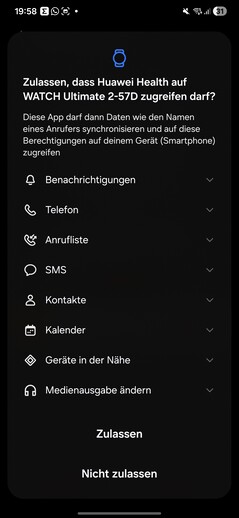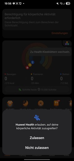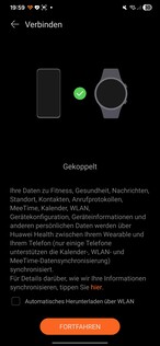 Test sırasında akıllı saat hemen algılandı ve sorunsuz bir şekilde eşleştirildi. Kurulum sırasında çeşitli izinlerin verilmesi gerekiyor. Ayrıca bir Huawei kimliği de gerekli. Sürecin sonunda, saat üzerinde bir eğitim başlatılıyor. Bir şey göze çarpıyor: akıllı saatte açılan her uygulama kendi ayrı veri işleme iznini gerektiriyor.