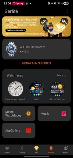 Watch Ultimate 2'yi kurmak ve çalıştırmak için Huawei Health uygulaması gereklidir. En son sürüm hala Google Play Store'da mevcut değil, ancak diğer uygulama mağazalarından veya doğrudan tarayıcı üzerinden indirilebilir.