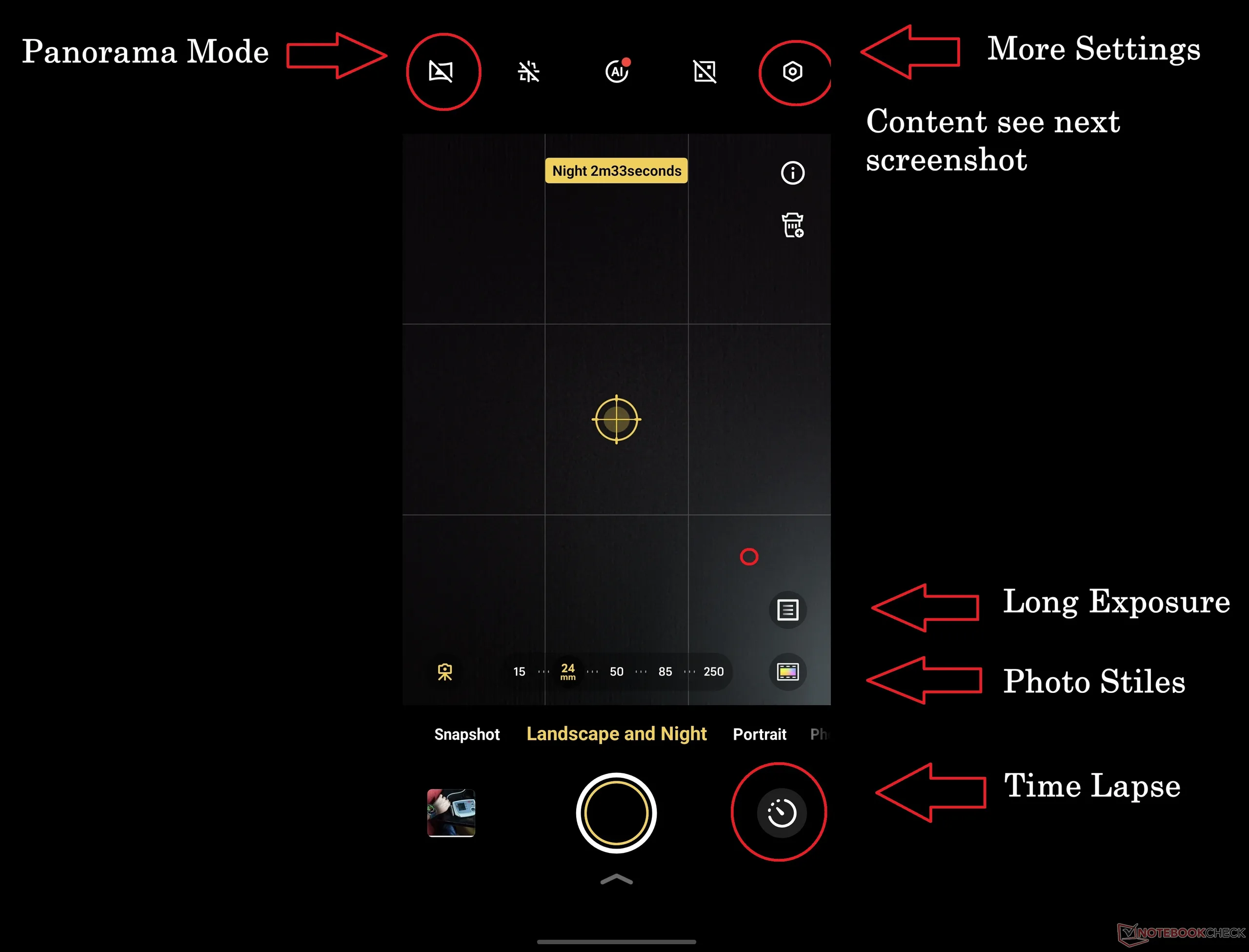Ne yazık ki, kamera uygulaması giderek daha kafa karıştırıcı hale geldi. Burada bir tutarlılık eksikliği olduğunu hissediyorum. Uzun Pozlama, Timelapse, Süper Ay veya Astro fotoğrafçılık gibi her türlü özel mod için artık Manzara ve Gece modu olarak adlandırılan mod prensipte iyi bir fikir, ancak şu anda bu mod içinde biraz kaos var.