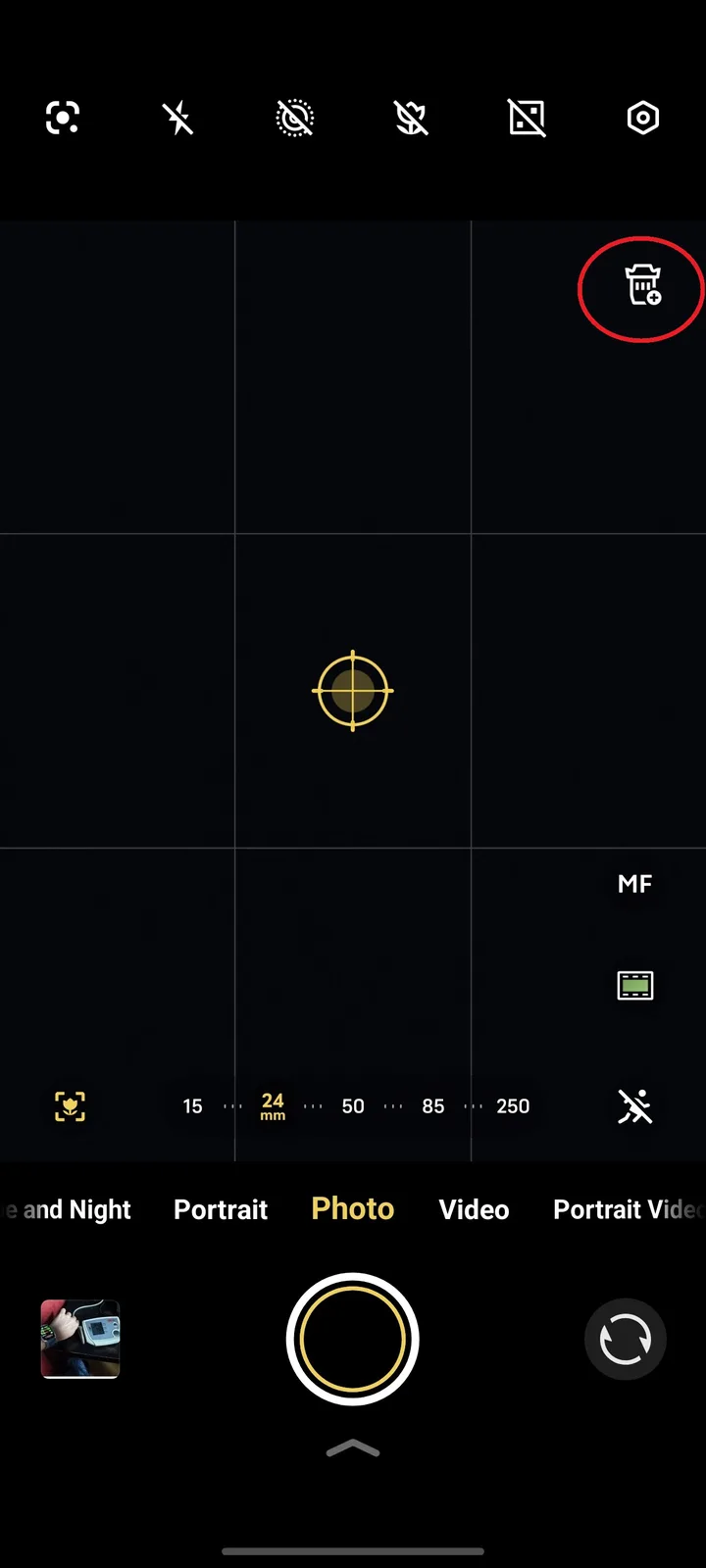 Ayarlarda etkinleştirilirse, bu moda hızlıca geçmek için neredeyse tüm modlarda bir telekonvertör sembolü mevcuttur. Lens simgesine bir kez daha dokunulduğunda standart odak uzunlukları yeniden etkinleştirilir.