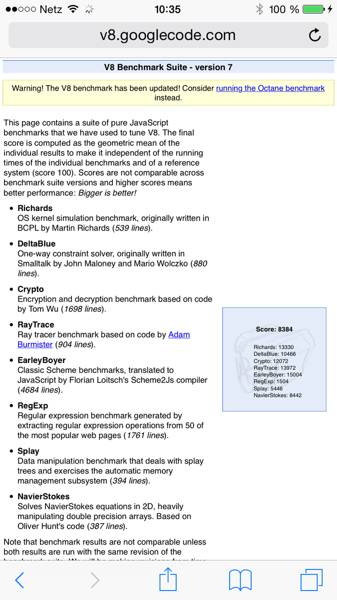 | Sunspider - 1.0 Total Score (değere göre sırala) | |