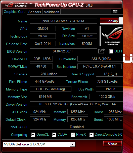 | Asus Strix GL502VT-DS74 GeForce GTX 970M, 6700HQ, Lite-On CV1-8B128 | Acer Predator 15 G9-592-7925 GeForce GTX 970M, 6700HQ, Samsung SSD PM871 MZNLN512HCJH | Aorus X5S v5 GeForce GTX 980M, 6700HQ, Samsung SM951 MZVPV256 m.2 | Asus Zenbook Pro UX501JW-FI218H GeForce GTX 960M, 4720HQ, SanDisk SD7SN3Q128G1002 | MSI GS60-6QE4K16H21 GeForce GTX 970M, 6700HQ, Hynix HFS256G3MND | Asus GL552VW-DH74 GeForce GTX 960M, 6700HQ, Samsung SSD 850 EVO M.2 500GB | |