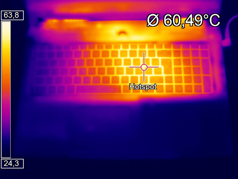 (-) Üst taraftaki maksimum sıcaklık, 40.4 °C / 105 F ortalamasına kıyasla 55.1 °C / 131 F'dir. , Gaming sınıfı için 21.2 ile 68.8 °C arasında değişir.