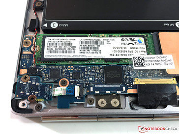 All configurations of the EliteBook Folio G1 are shipped with M.2-SSDs with a storage capacity between 128 and 512 GB. Our test model is even equipped with a fast PCIe-NVMe SSD from Samsung (SM951) and a capacity of 256 GB. Except for the Asus Zenbook (SATA-III), all the rivals are equipped with fast PCIe-SSDs, so the benchmarks results are often comparable. We can still see some variation for the fast drives in the benchmarks, so smaller differences can be neglected. Besides the Zenbook, both the Apple MacBook 12 as well as the Dell XPS 13 (write speeds in particular) clearly fall behind the Folio G1. Subjectively, you can mainly notice the differences when you copy large amount of files, but this is usually quite rare in practice.