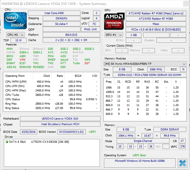 | Lenovo Yoga 510-15ISK Radeon R7 M460, 6200U, Liteonit CV3-DE256 | Lenovo Yoga 500-15IBD GeForce 940M, 5200U, WDC Scorpio Blue WD10JPVX-22JC3T0 | HP Envy 15-w103ng x360 GeForce 930M, 6200U, Samsung SSD PM851 256 GB MZNTE256HMHP | Dell Inspiron 15 7558 HD Graphics 5500, 5200U, Sandisk X300 SD7SB6S-256G-1012 | |