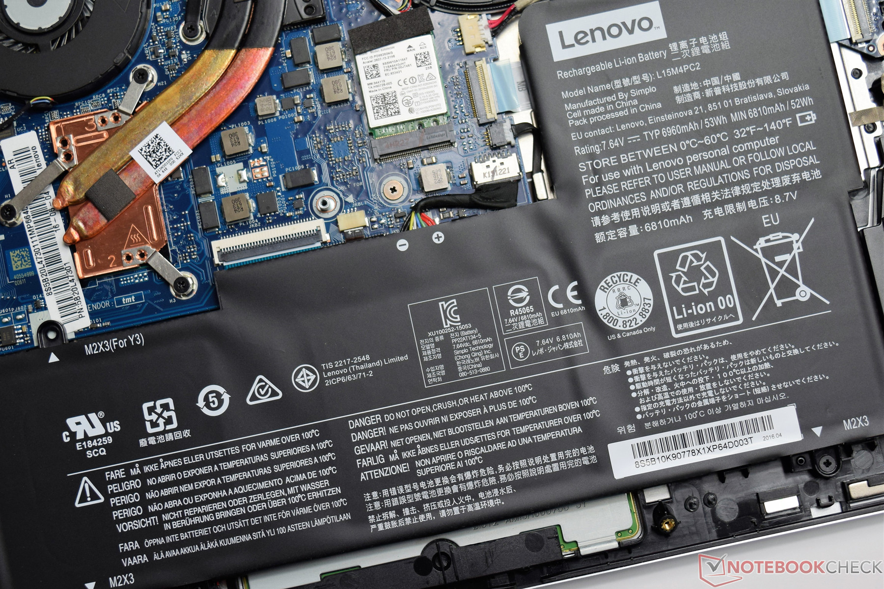 The battery life of the Yoga 710 surpasses that of the competition. Part of the reason for the better performance is the higher-capacity battery with 53 Wh. Under full load, the Yoga lasts for 2 hours 27 minutes before shutting down. We recorded a run time of 7 hours 13 minutes during our WLAN test, which closely simulates the real-life battery usage. The run times are quite good and with moderate use, the convertible will easily last an entire work day.