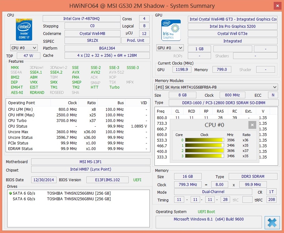 | MSI GS30 Shadow Iris Pro Graphics 5200, 4870HQ | Schenker S413 Iris Pro Graphics 5200, 4750HQ | Alienware 13 GeForce GTX 860M, 4210U | Schenker XMG A305 GeForce GTX 960M, 4710MQ | Schenker XMG C405 GeForce GTX 965M, 4720HQ | Razer Blade 14 2015 GeForce GTX 970M, 4720HQ | |