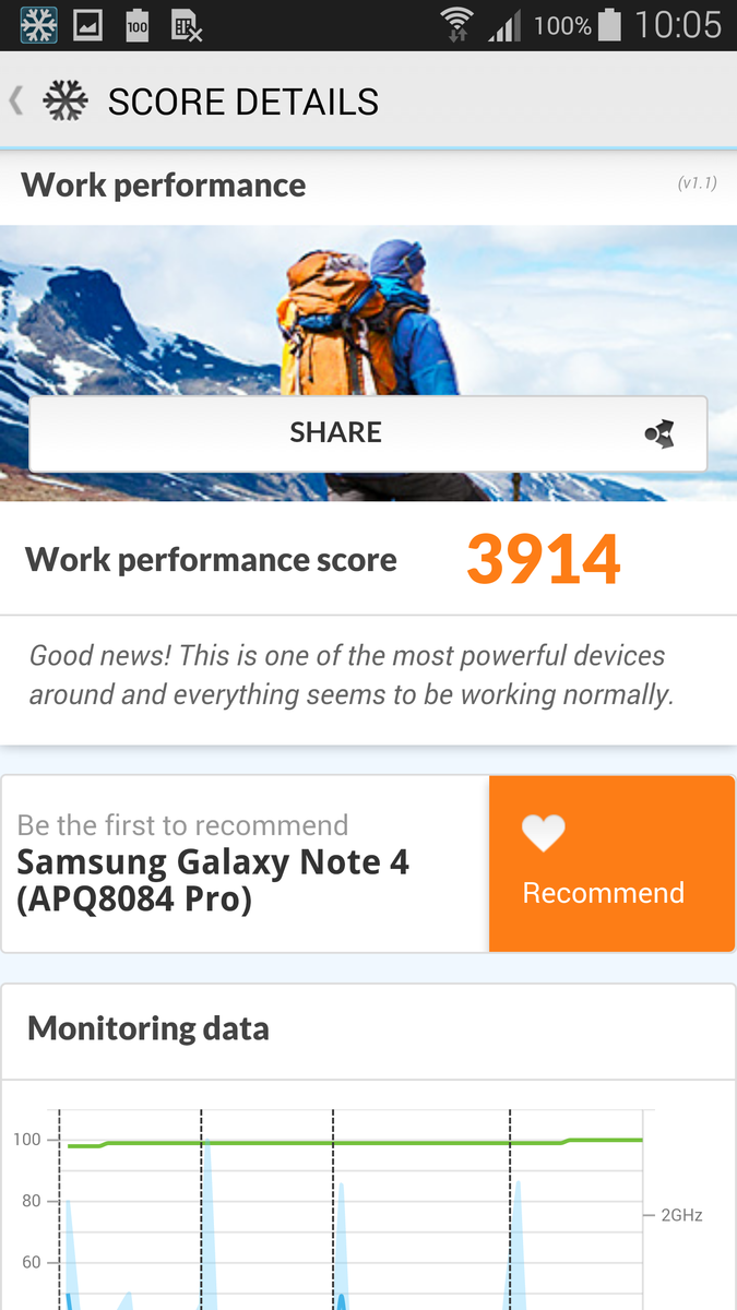 Samsung Galaxy Note 4 (SM-N910F) harika bir akıllı telefon. Materyal izlenim artık daha iyi ve metral çerçeve daha ilgi çekici. Snapdragon 805 çok hızlı ancak Adreno 420'nin yoğun kullanımda tıkanması oldukça sinir bozucu. Samsung'un 64 bit Exynos 5433 işlemcisini ve ARM Mali-t/60 kartını kullanan SM-N910C versiyonunun da bu sorunları yaşamasını görmek ilginç olacak.