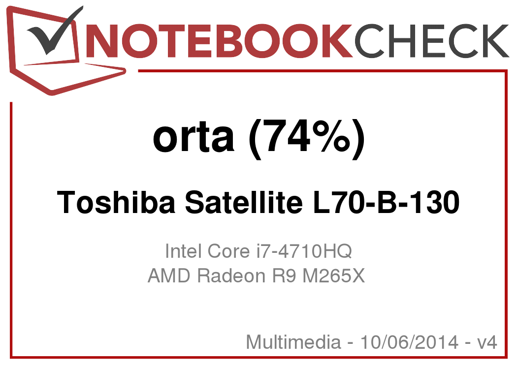Multimedia laptopları için 1000 Euronun altındaki fiyatlar oldukça rekabetçi ve Toshiba oyun oynanabilir multimedia cihazlar arasında yerini alıyor. Ancak üretici anlamadığımız bazı noktalarda kendini gösteriyor: parlak piyano renkli plastik kasa ile 1600x900 piksel çözünürlüğünde parlak ekran 17.3 inçlik laptopta öne çıkanlar arasında. AMD Radeon R9 M265X ise ilginç bir seçim. Satın almayı düşünen kullanıcıların gerçekten ne istediklerini iyi bilmeleri gerekli. Çünkü bu cihaz çok iyi bir multimedia cihazı. İyi ses sistemi ile bekleme süresindeki batarya kullanımı hoşumza gidenler arasında. Ancak cihazın oldukça yüksek sıcaklık üretimi stress testi süresince ortaya çıkmasa bile yoğun kullanımda düşündürebilecek nitelikte.