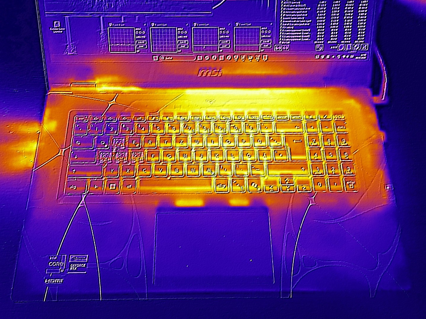 (-) Üst taraftaki maksimum sıcaklık, 40.4 °C / 105 F ortalamasına kıyasla 49 °C / 120 F'dir. , Gaming sınıfı için 21.2 ile 68.8 °C arasında değişir.