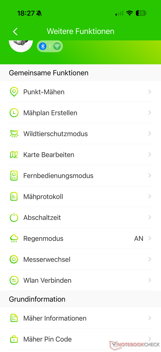 Uygulama ile daha fazla seçenek var. Bluetooth ve WLAN ile bağlantıyı kurduktan sonra, ki bu iyi açıklanmış ve testte herhangi bir sorun olmadan çalıştı, önce çim alanın olağan haritalanması gerekiyor. Burada seçim yapabileceğiniz iki seçenek var.