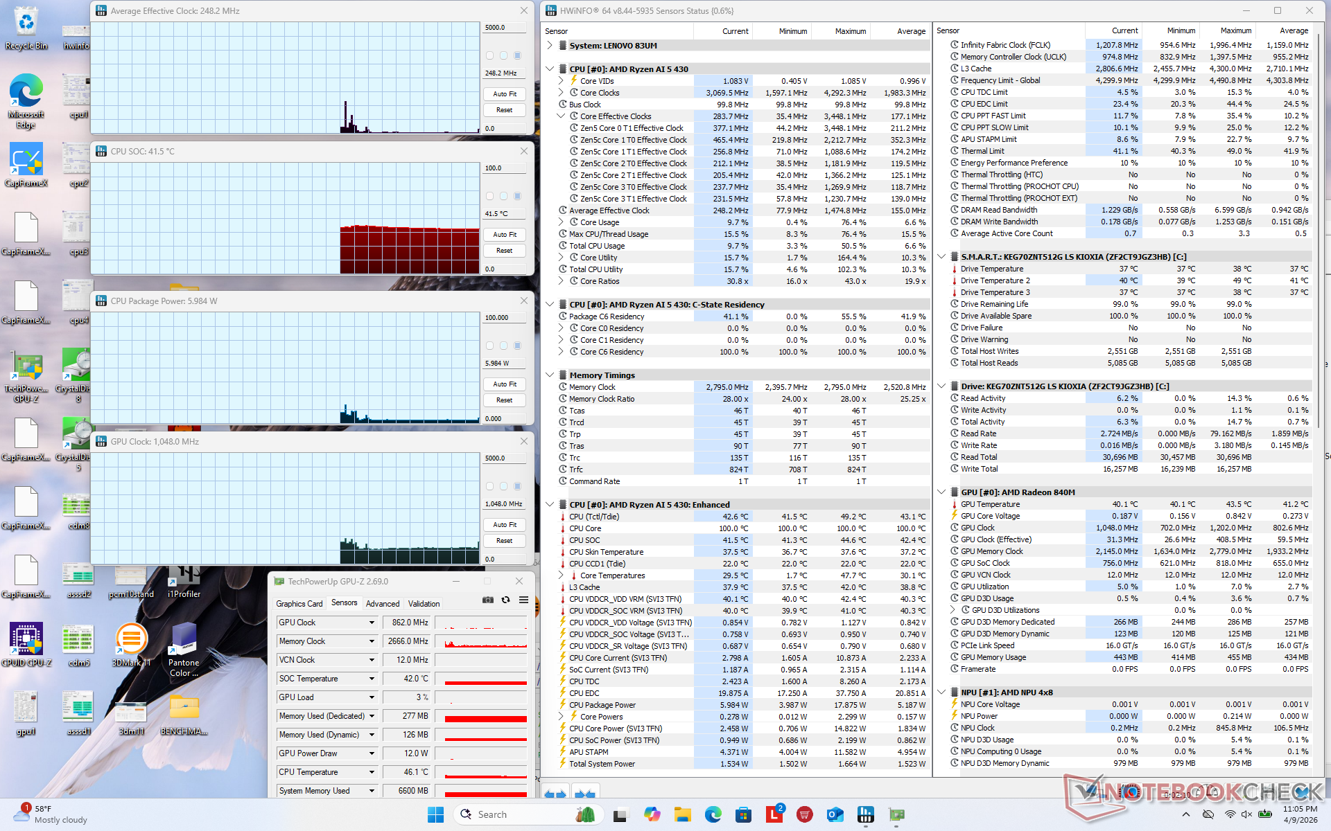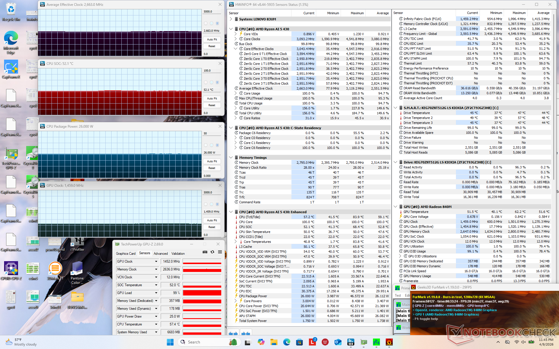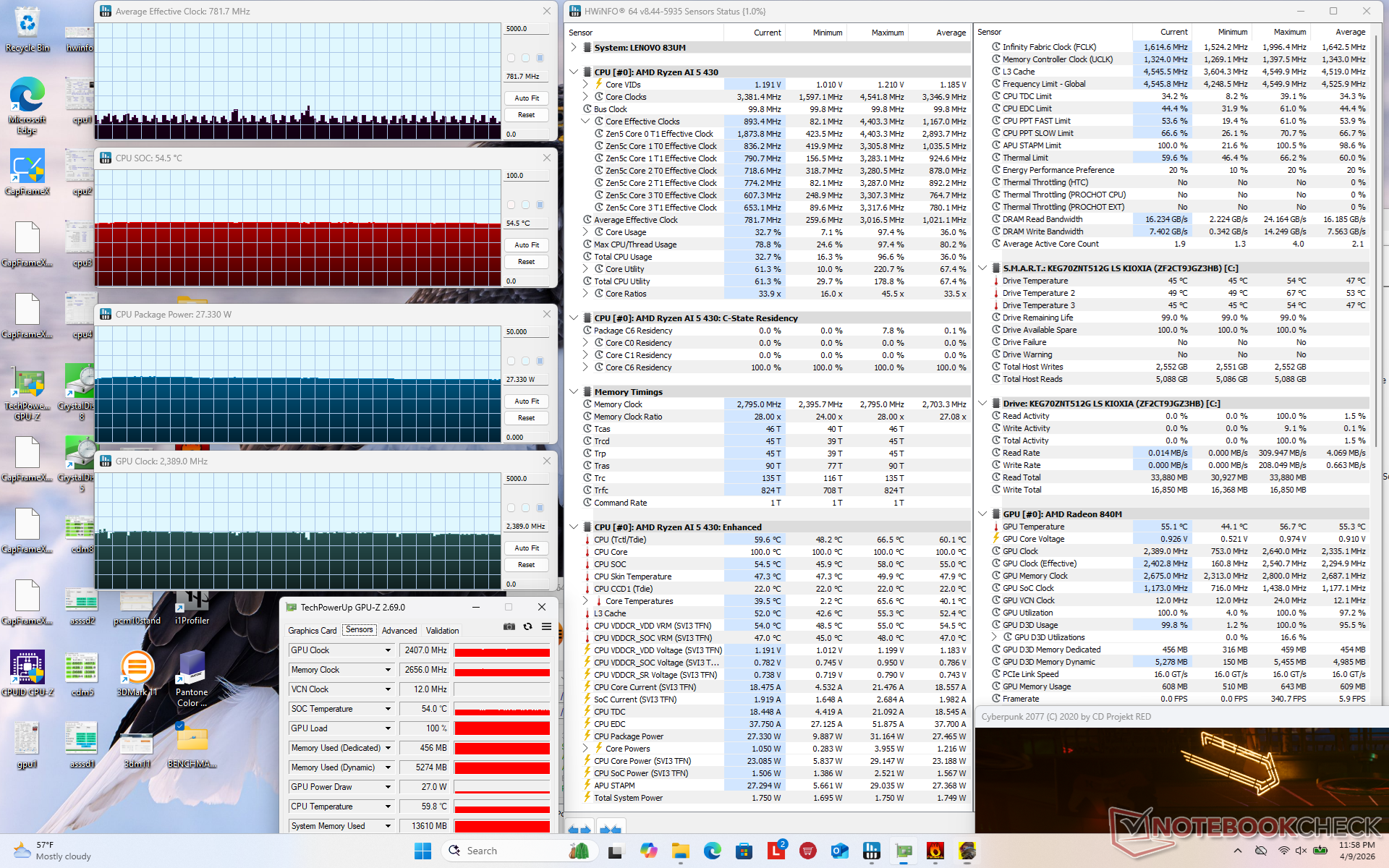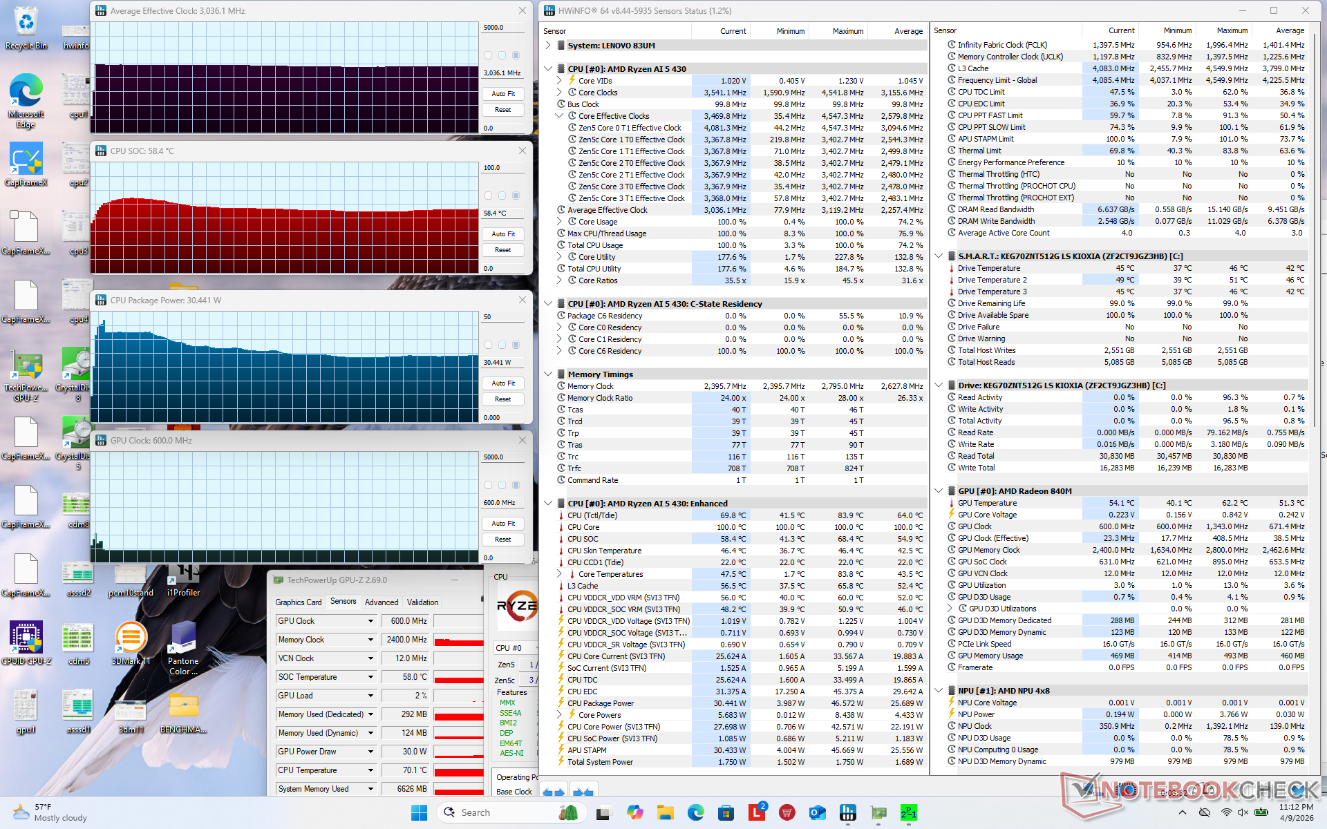 Tüketim, AMD sistemimizin en az birkaç watt daha fazla çekeceği oyunları çalıştırmak dışında Intel destekli IdeaPad Slim 3 15IRH10R ile benzer olacaktır. Biraz daha yüksek tüketim, Radeon 840M'yi Iris Xe 4 çekirdekli ile karşılaştırırken daha hızlı entegre GPU performansımızla uyumludur.