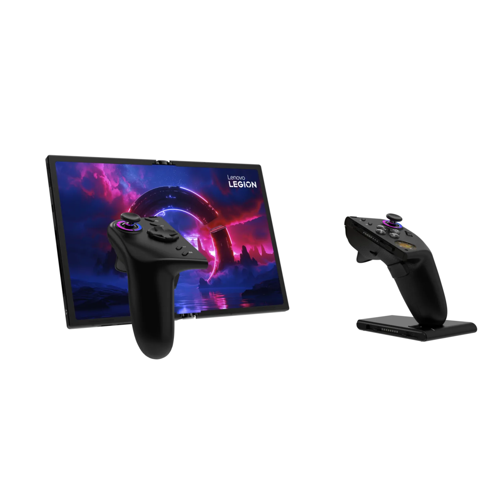 Normal Legion Go gibi, biri fare olarak ikiye katlanabilen iki çıkarılabilir kontrolörle birlikte gelir. Birlikte, hem kompakt hem de genişletilmiş formlarında tablet için tek bir montaj parçası oluşturacak şekilde monte edilebilirler. Legion Go Fold Concept esasen bazen bir el konsolu olarak kullanılabilen çok amaçlı bir tablettir.
