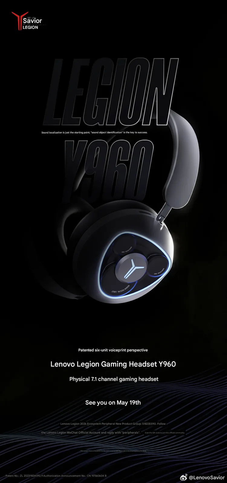 Bununla birlikte, teaser'da bunun bir "fiziksel 7.1 kanallı" oyun kulaklığı, Lenovo'nun sürükleyici bir ses deneyimi sunmaya odaklandığı anlamına geliyor. Kulaklığın vokalleri ve diyalogları ne kadar iyi işlediğine atıfta bulunan "patentli altı üniteli ses perspektifi "nden bahsediliyor.
