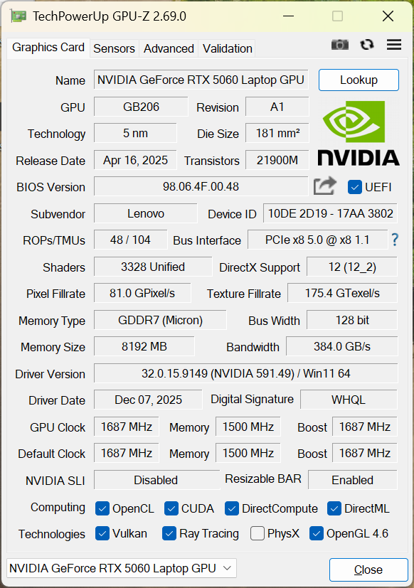 | Lenovo Pro 9 16IPH11 Intel Core Ultra 9 386H ⎘ NVIDIA GeForce RTX 5060 Laptop ⎘ 32 GB Bellek, 1024 GB SSD | Amazon: Liste fiyatı: 3100 USD | 1.9 kg | 17.3 mm | 16.00" 3200x2000 236 PPI Tandem OLED | |