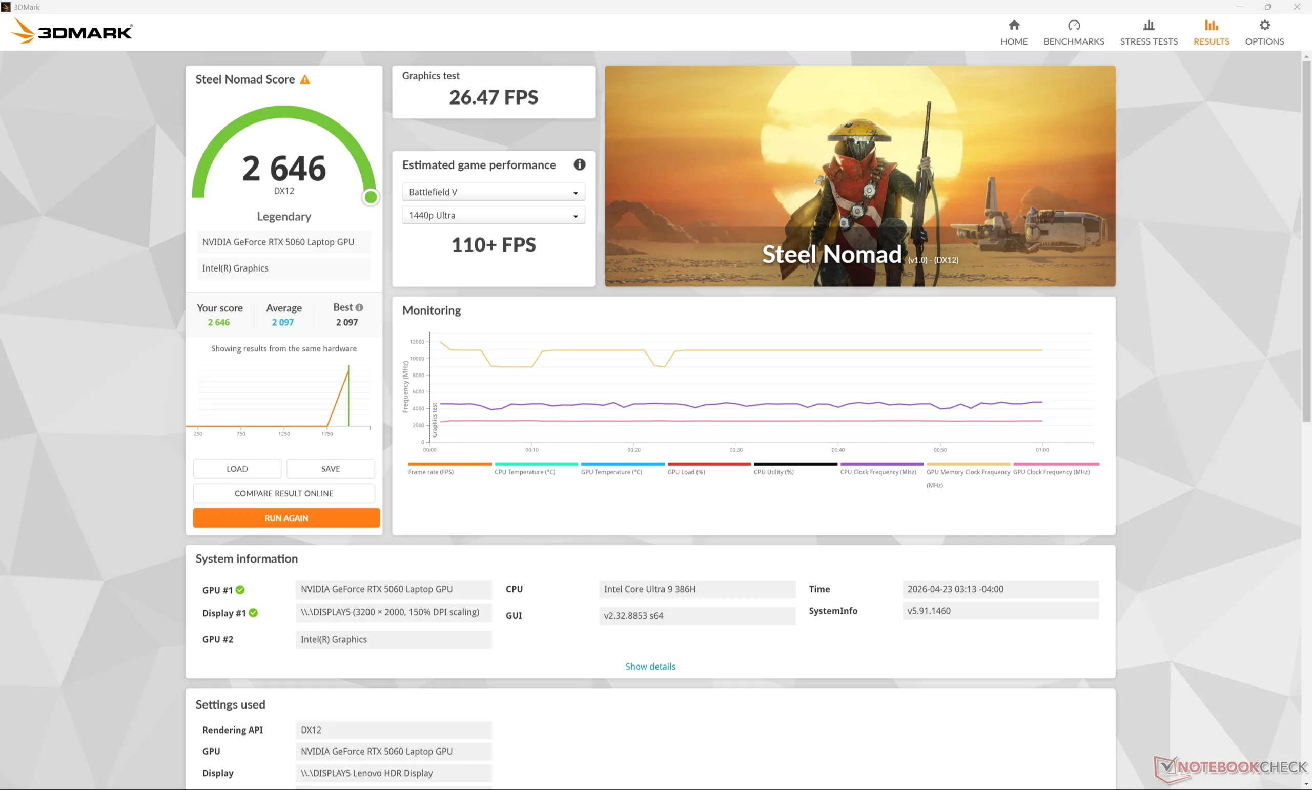 Test ünitemiz 100 W GeForce RTX 5060 GPU ve 3200 x 2000 Tandem OLED dokunmatik ekran ile donatılmış en üst konfigürasyon olup yaklaşık 3100 $'dır. Alt uç SKU'lar bunun yerine RTX 5050 veya 2880 x 1800 OLED ile gelir, ancak tüm seçenekler aynı Core Ultra 9 386H Panther Lake CPU ile gönderilir.