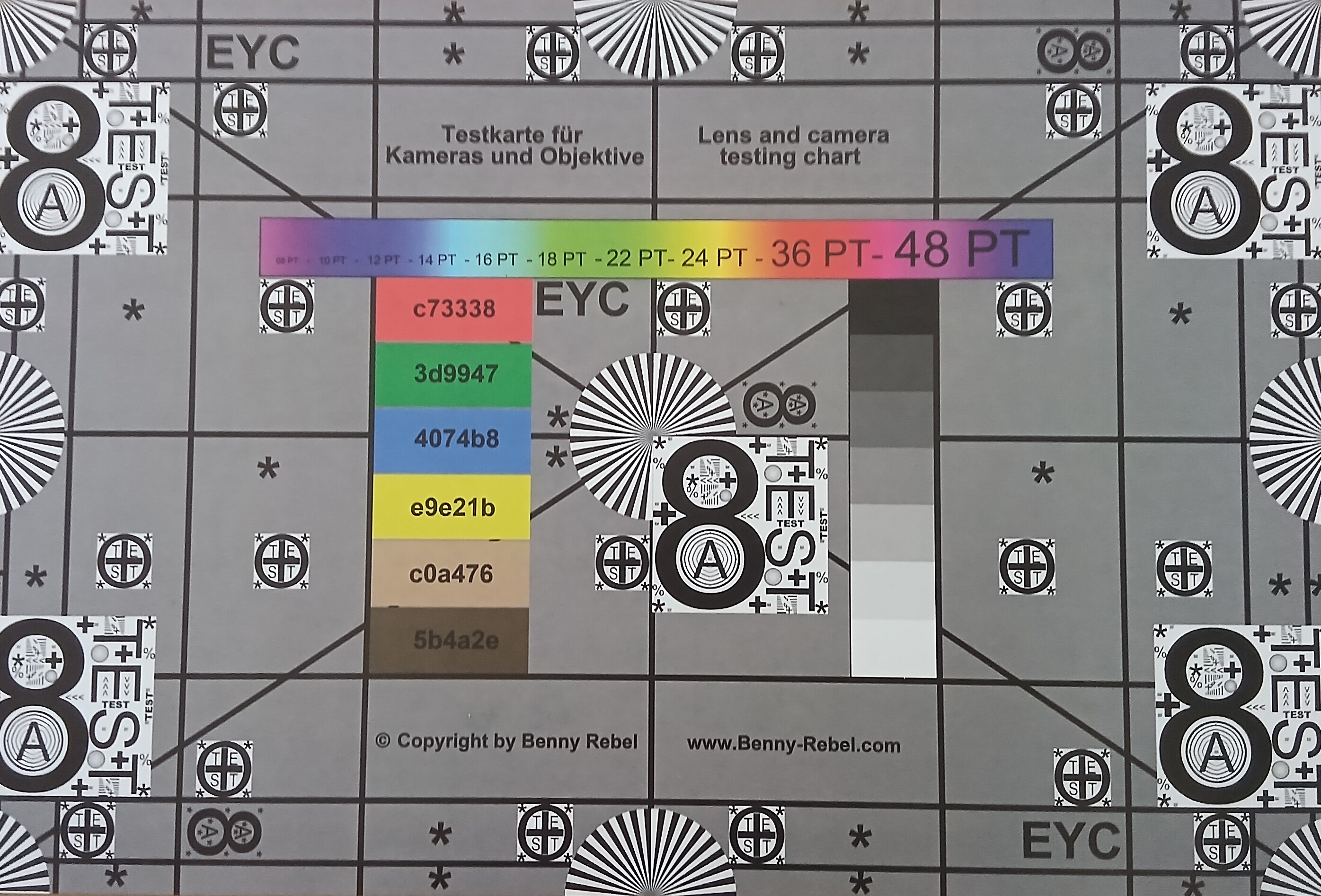 Test laboratuvarımızda, kontrollü aydınlatma koşulları altında ana kameraya bir kez daha yakından baktık. Optimum aydınlatma ile renkleri oldukça doğru bir şekilde yakalamayı başardı (maksimum Delta-E 9,86) ve test tablosunu tamamen yeniden üretti, ancak her alanda keskin bir şekilde değil. 1 lüks artık ışıkta, test tablosu ve ColorChecker renk tablosu yalnızca soluk bir şekilde görülebiliyordu.