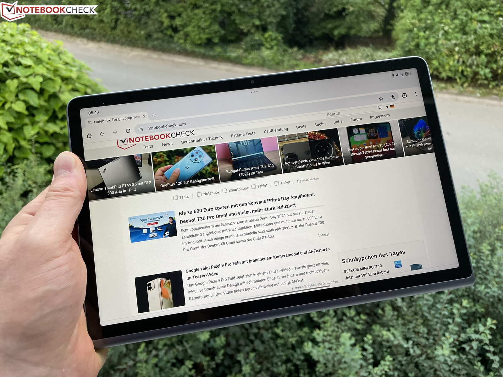 Saf beyaz bir arka plan görüntülenirken, IPS panel ortalama 438 cd/m² parlaklık elde eder ve maksimum 465 cd/m²'ye ulaşır. Eşit olarak dağıtılmış parlak ve karanlık görüntü alanları (APL18 ölçümü) ile maksimum 420 cd/m²'dir. Bu, Tab Plus'ın IPS panelinin aynı fiyat aralığındaki karşılaştırma cihazları kadar parlak olduğu anlamına gelir; bu da onu öncelikle bir iç mekan tableti yapar.
