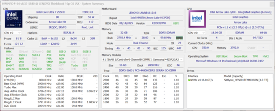 | Lenovo Yoga Pro 9 16IAH G10 RTX 5060 (Angelbird AV Pro V60) | |