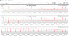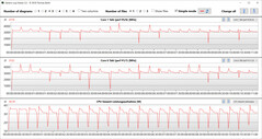 Prime95 ve Furmark'ın sürekli çalışmasını içeren stres testi, tam yük altında sistem kararlılığını test etmek için aşırı bir senaryo sunar. Testin başında, CPU 3,4 ila 3,6 GHz saat hızlarında çalışır ve test ilerledikçe kademeli olarak 3 ila 3,1 GHz'e düşer. Eş zamanlı olarak, GPU saat hızı kısa bir süre sonra 2 GHz'den 1,4 GHz'e düşer ve bu düşük seviyede kalır.