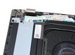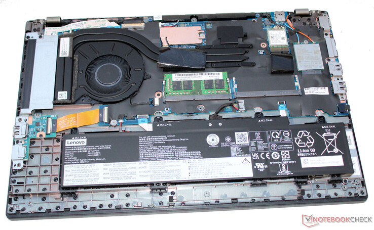 Alttaki vidaları gevşettikten sonra, taban plakası düz bir spatula ile çıkarılabilir. Bu sayede SSD (PCIe 3 yuvasında PCIe 4 SSD, M.2-2242), WLAN modülü, LTE modem, bellek bankaları, pil, hoparlörler, fan ve BIOS pili dahil olmak üzere çeşitli bileşenlere erişim sağlanır.