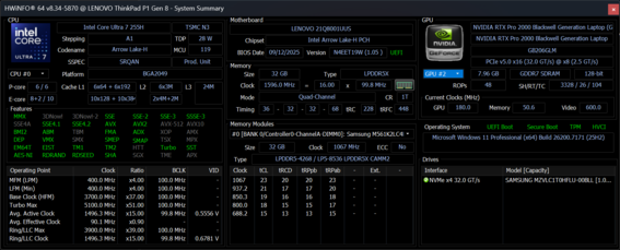 | Lenovo ThinkPad P1 Gen 8 Ultra 7 255H, RTX PRO 2000 Blackwell Generation Laptop, Samsung PM9E1 1 TB MZVLC1T0HFLU, Tandem OLED, 3200x2000, 16" | Lenovo ThinkPad P16s Gen 4 AMD Ryzen AI 9 HX 370, Radeon 890M, , , 1920x1200, 16" | Lenovo ThinkPad P1 Gen 7 21KV001SGE Ultra 7 155H, GeForce RTX 4060 Laptop GPU, Kioxia XG8 KXG8AZNV1T02, IPS LED, 2560x1600, 16" | HP ZBook X G1i 16 Ultra 7 265H, RTX PRO 2000 Blackwell Generation Laptop, Samsung PM9A1 MZVL22T0HBLB, IPS, 2560x1600, 16" | Dell Pro Max 16 Plus Ultra 9 285HX, RTX PRO 5000 Blackwell Generation Laptop, SK hynix PCB01 HFS001TFM9X186N, OLED, 3840x2400, 16" | Asus ExpertBook B6 Flip B6602FC2 i9-12950HX, RTX A2000 Laptop GPU, Samsung PM9A1 MZVL21T0HCLR, IPS, 2560x1600, 16" | |