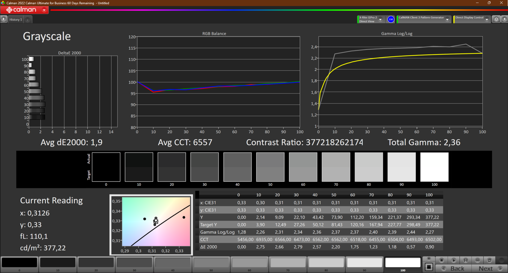 ΔE Greyscale Calman: 1.5 | ∀{0.09-98 Ø5}