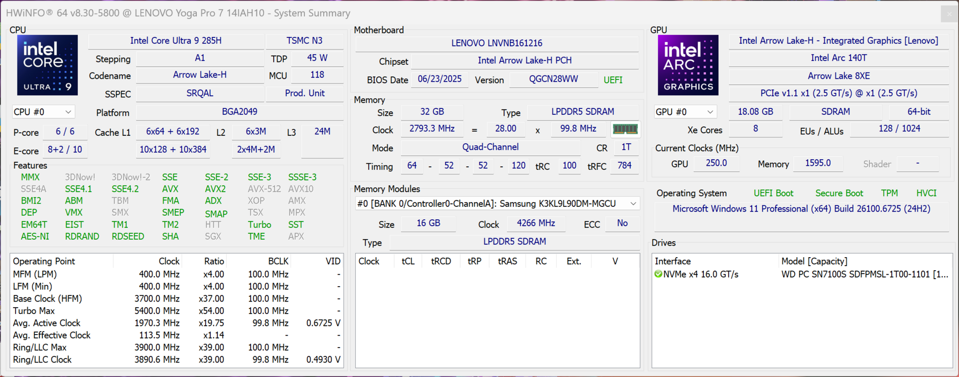 | Lenovo Yoga Pro 7 14IAH10 (Angelbird AV Pro V60) | |