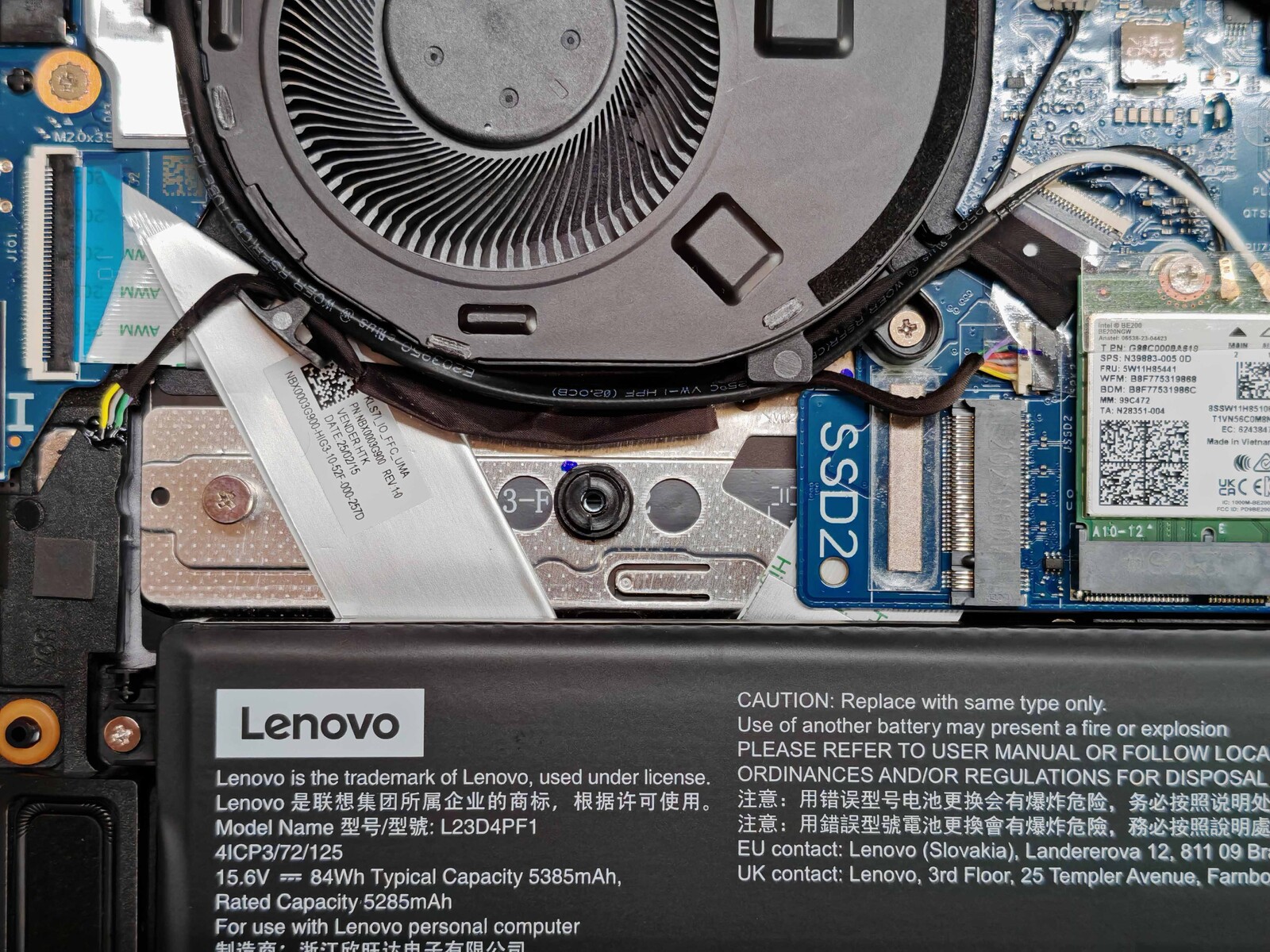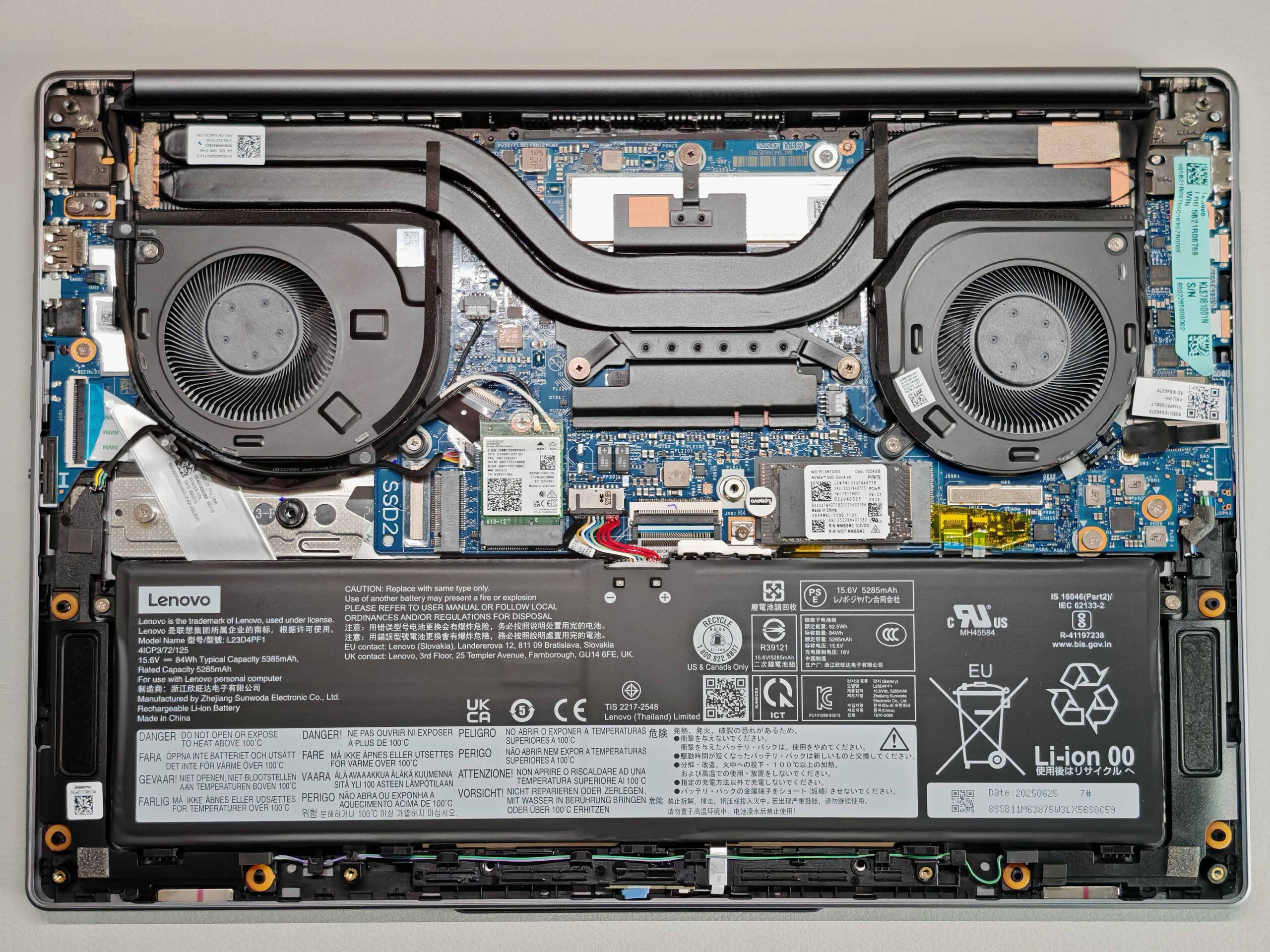 Yüksek güç limitleri de başka sorunlara neden oluyor, çünkü birlikte verilen 100 watt güç kaynağı tam yük altında çok zayıf, bu yüzden bataryadan yararlanılması gerekiyor. Buna ek olarak, soğutma 48 dB(A) ile çok gürültülü ve pil ömrü daha zayıf. Lenovo'nun neden sadece Intel modeline kart okuyucu sağladığı bizim için bir muamma.