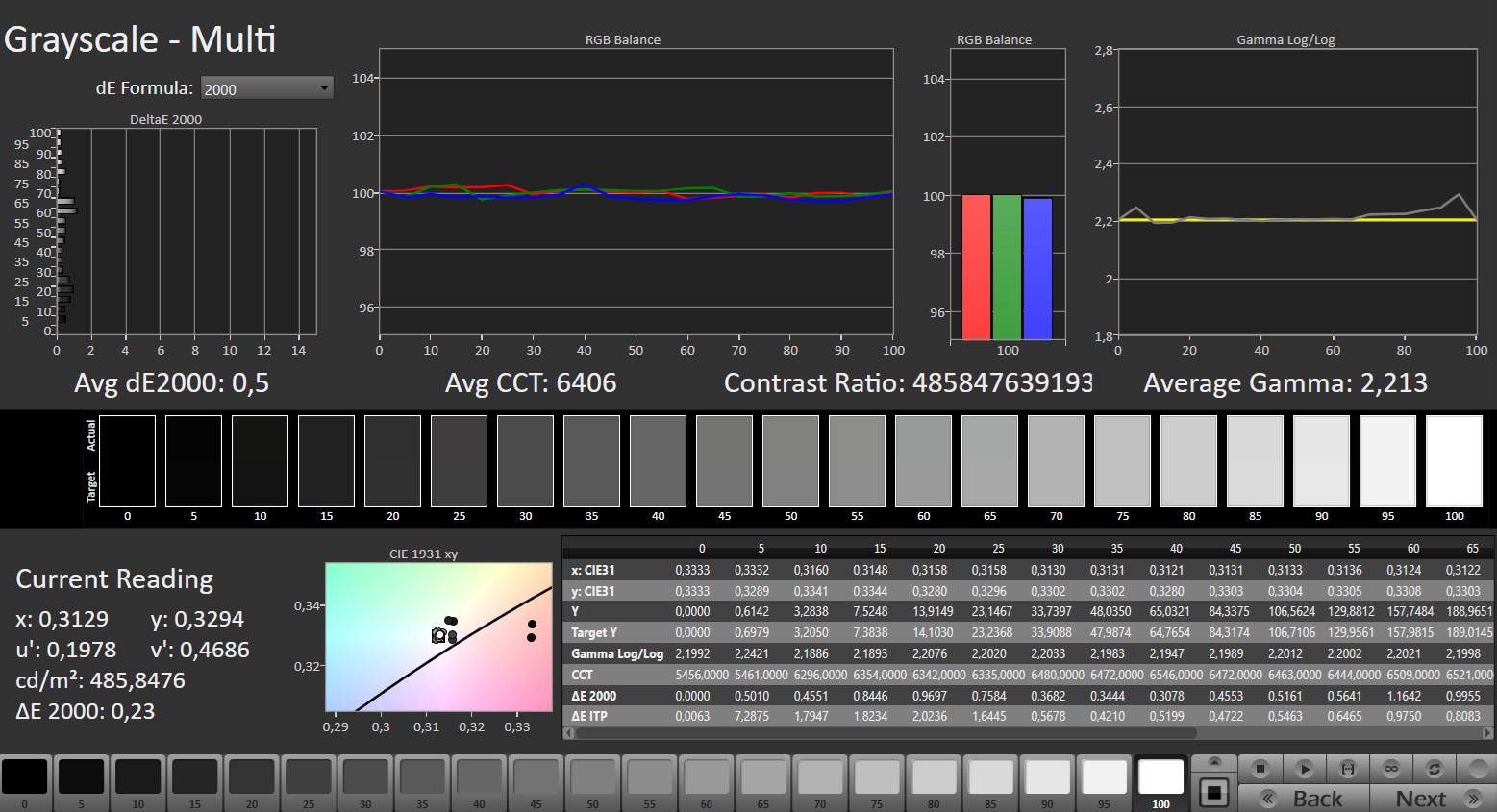 ΔE Greyscale Calman: 1.1 | ∀{0.09-98 Ø4.99}