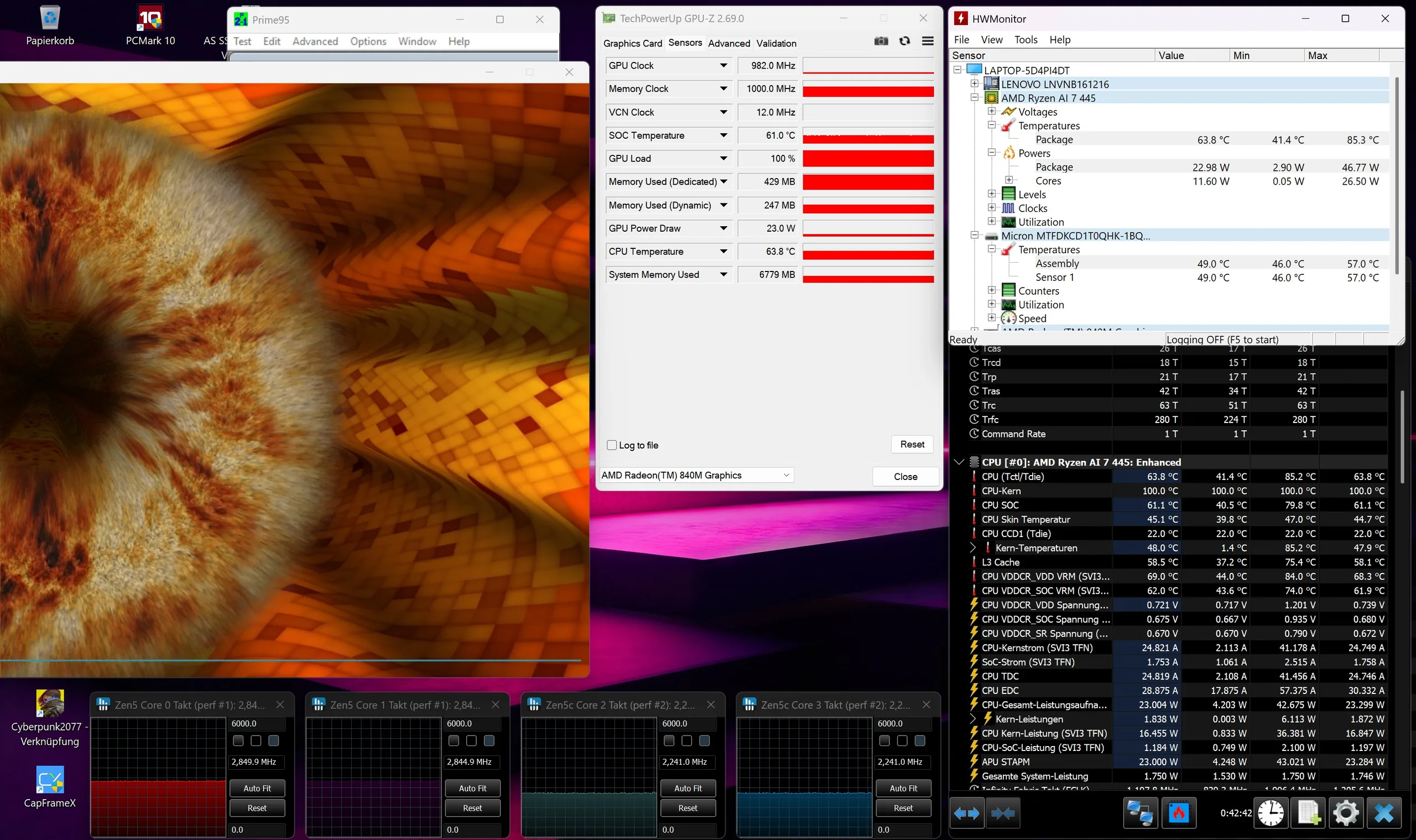 Güç tüketimi yönetilebilir sınırlar içinde kalmaktadır. Boşta yaklaşık 5 W ve yük altında yaklaşık 60 W, Intel'in Core Ultra 5 226V'si daha da ekonomik olmasına rağmen, hız göz önüne alındığında makuldür.