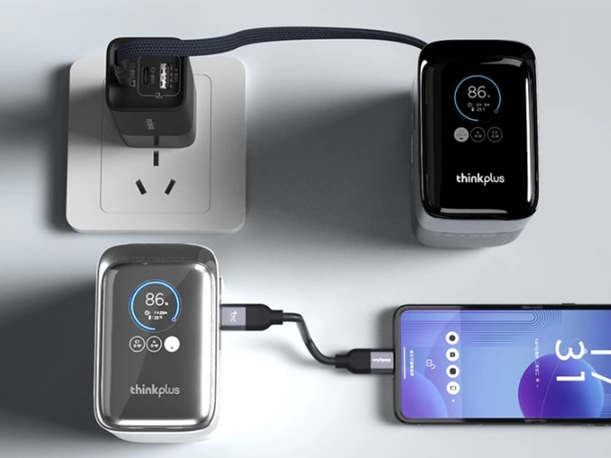 ThinkPlus Geri Çekilebilir Kablolu Güç Bankası, PPS, PD3.2 ve QC dahil olmak üzere çeşitli hızlı şarj protokollerini destekler ve ayrıca geçişli şarj imkanı sunar. Bu model, şarj bilgilerini gerçek zamanlı olarak gösteren entegre bir 2,01 inç TFT ekrana sahiptir. 82 x 81 x 51 mm (~3,2 x 3,2 x 2,0 inç) boyutlarında ve taşımayı kolaylaştırmak için küçük bir kordonla birlikte geliyor.
