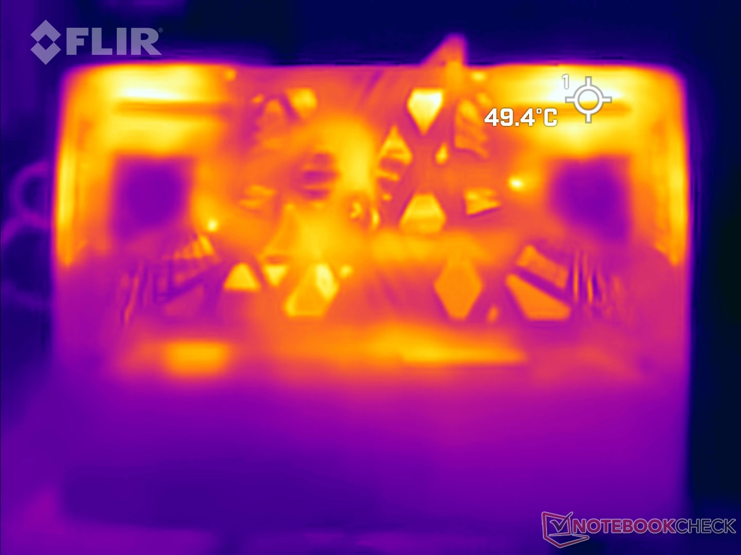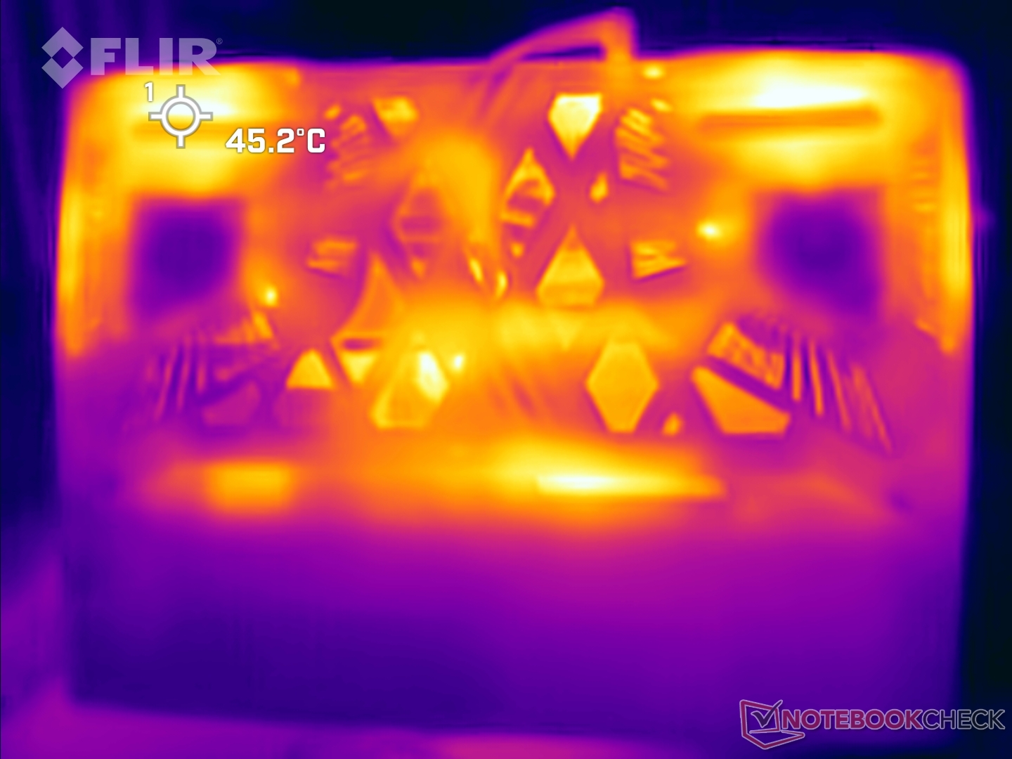 Yüzey sıcaklıkları, Aşırı Performans modunda yük altında üst tarafta 45 °C'ye ve alt tarafta yaklaşık 49 °C'ye ulaşabilir.