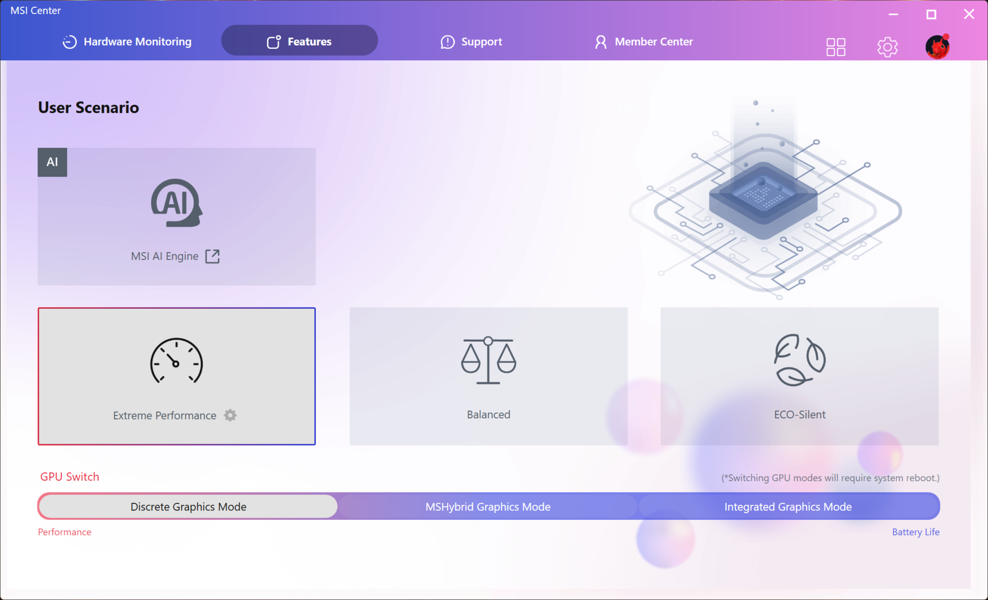 Extreme Performance modu, Crosshair 16 HX AI'nın tüm potansiyelini ortaya çıkarır, ancak bu, daha yüksek güç çekimleriyle birlikte artan ısı ve gürültü emisyonlarının felaketiyle birlikte gelir.