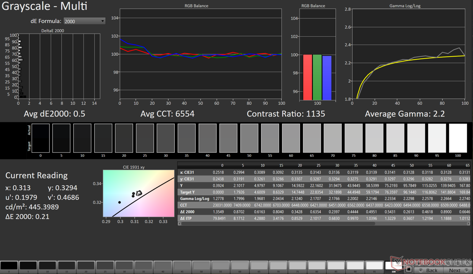 Ölçülen 1.180:1 kontrast oranı, neredeyse eksiksiz sRGB ve Display P3 renk gamı kapsamı ile öznel olarak iyi bir görüntüleme deneyimi sunuyor.