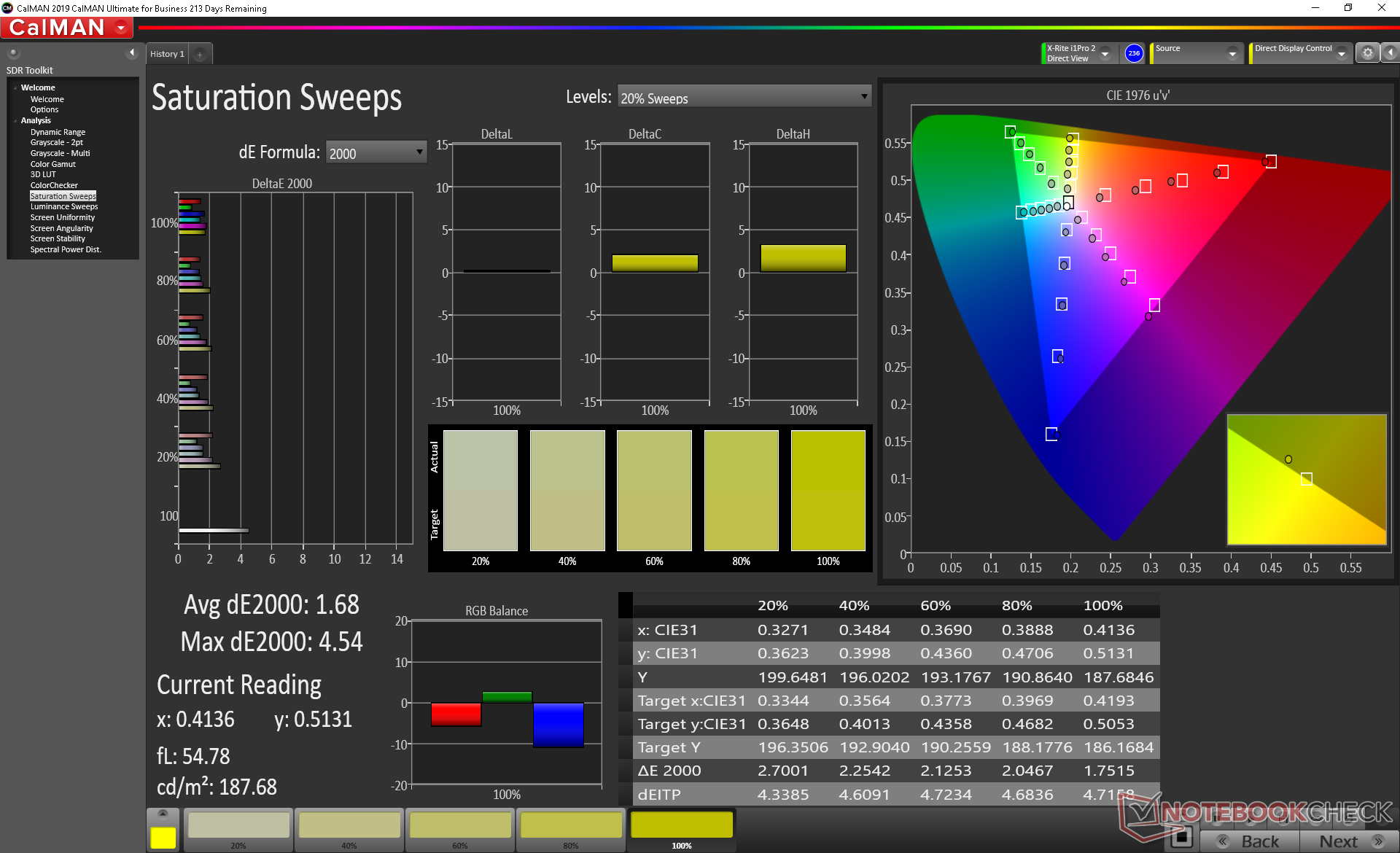 X-Rite kolorimetresi ile yapılan ölçümler kutudan iyi kalibre edilmiş bir ekranı ortaya çıkarır. Ekranı kendimiz daha da kalibre etmek, son kullanıcıların ekrandan en iyi şekilde yararlanmak için başka bir şey yapmaları gerekmediği anlamına gelir.